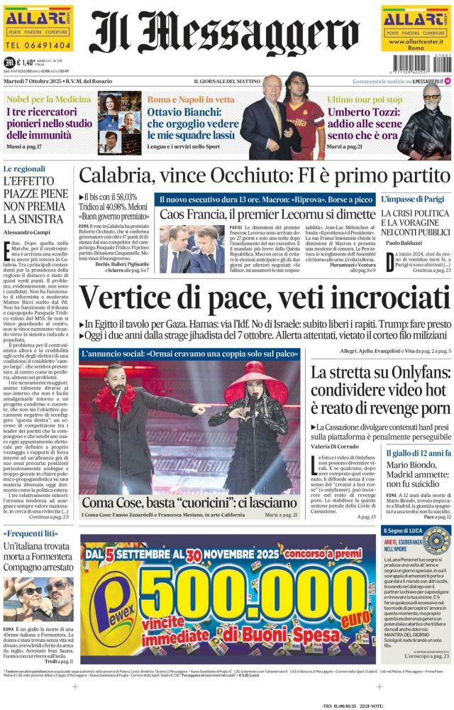 Le prime pagine dei quotidiani italiani e stranieri di oggi, martedì 7 ottobre