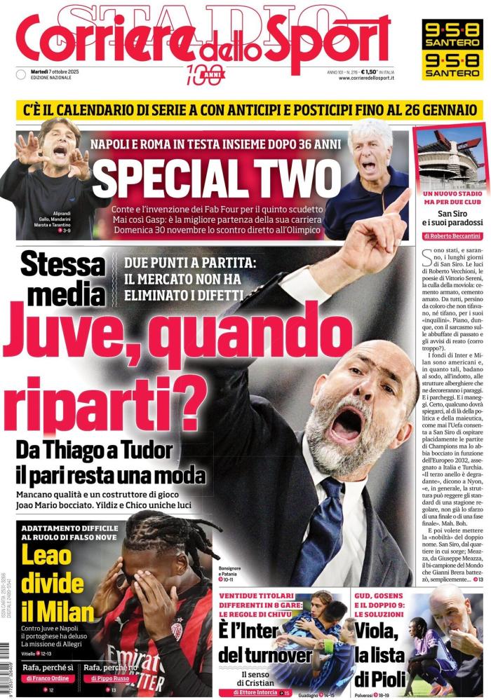C'è la sosta ma il calcio non si ferma. Tanti gli argomenti sulle prime pagine dei quotidiani in edicola quest'oggi, martedì 7 ottobre 2025, e che vi proponiamo in calce. Torna la nazionale ma si continua a parlare anche del campionato con gli attaccanti in primo piano.