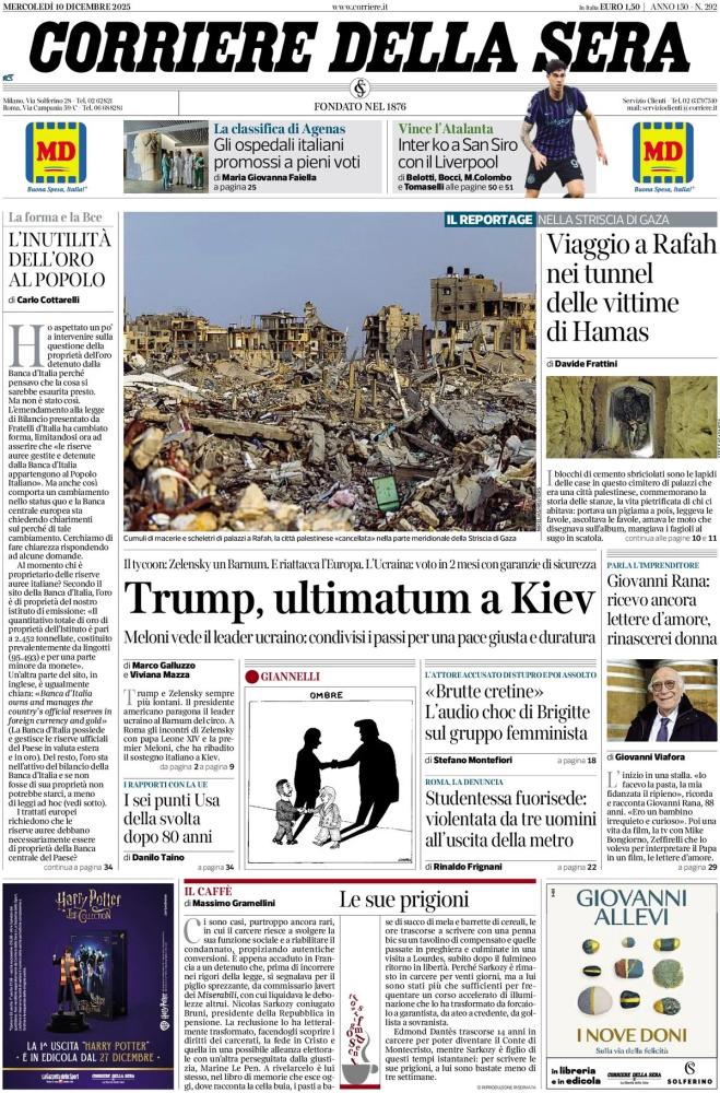 Le prime pagine dei quotidiani italiani e stranieri di oggi, mercoledì 10 dicembre
