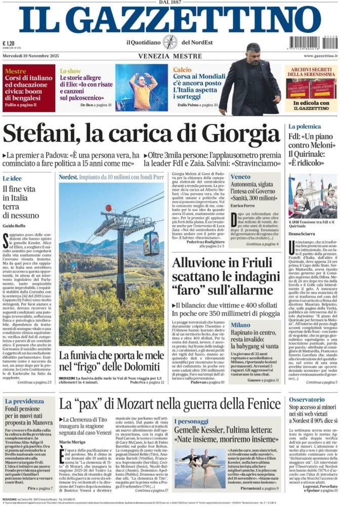 Le prime pagine dei quotidiani italiani e stranieri di oggi, mercoledì 19 novembre