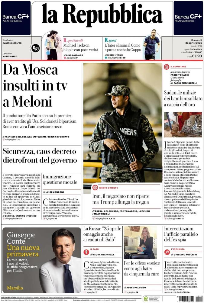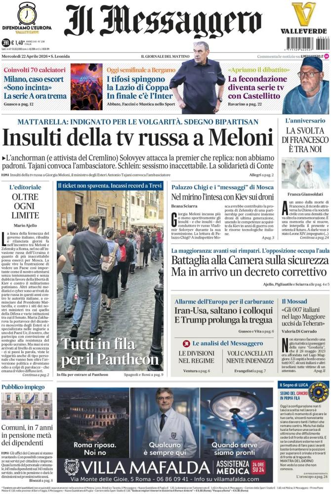 Le prime pagine dei quotidiani italiani e stranieri di oggi, mercoledì 22 aprile