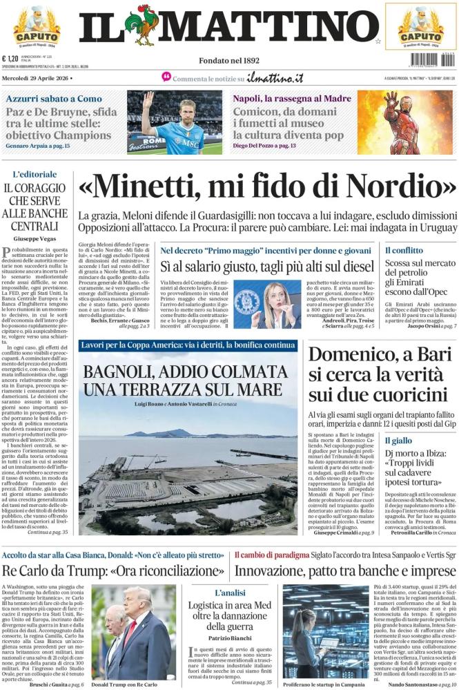 Le prime pagine dei quotidiani italiani e stranieri di oggi, mercoledì 29 aprile