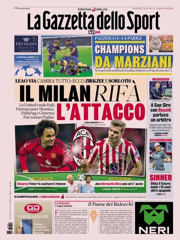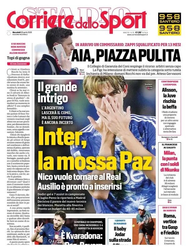Tanto spazio dedicato al calcio nelle prime pagine lanciate oggi in edicola dai principali giornali sportivi italiani e stranieri. Il focus è soprattutto sul mercato, con l'Inter che sogna il colpo Nico Paz per aumentare la fantasia della squadra della prossima stagione sulla trequarti: il fantasista spagnolo è destinato a salutare il Como per tornare al Real Madrid, ma il suo futuro resta incerto e i nerazzurri sono pronti ad inserirsi. E intanto Federico Dimarco si avvicina al rinnovo di contratto.