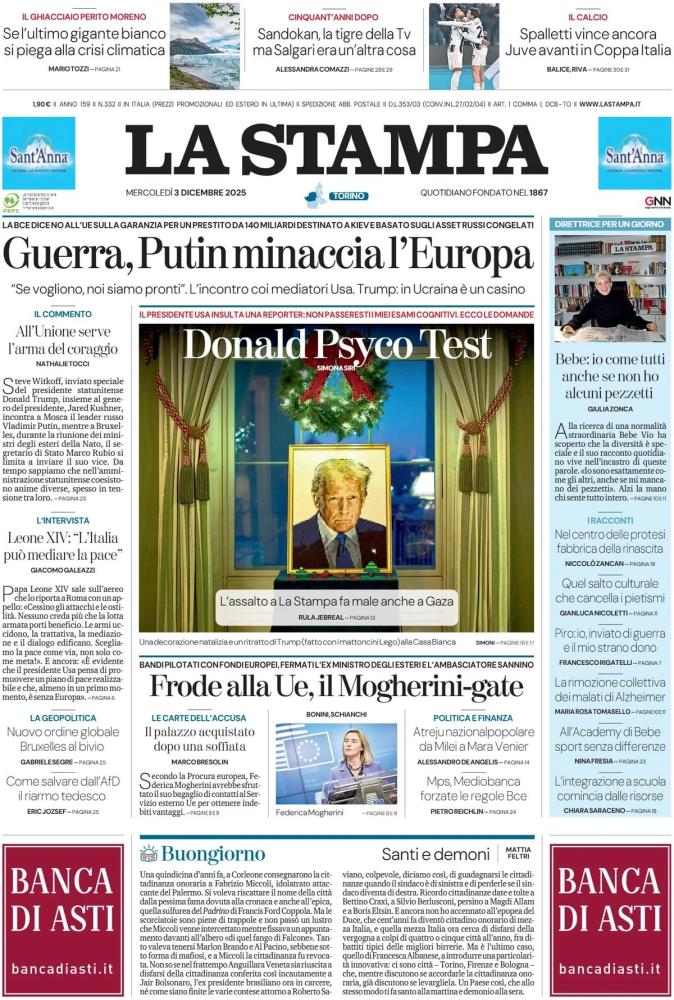 Le prime pagine dei quotidiani italiani e stranieri di oggi, mercoledì 3 dicembre