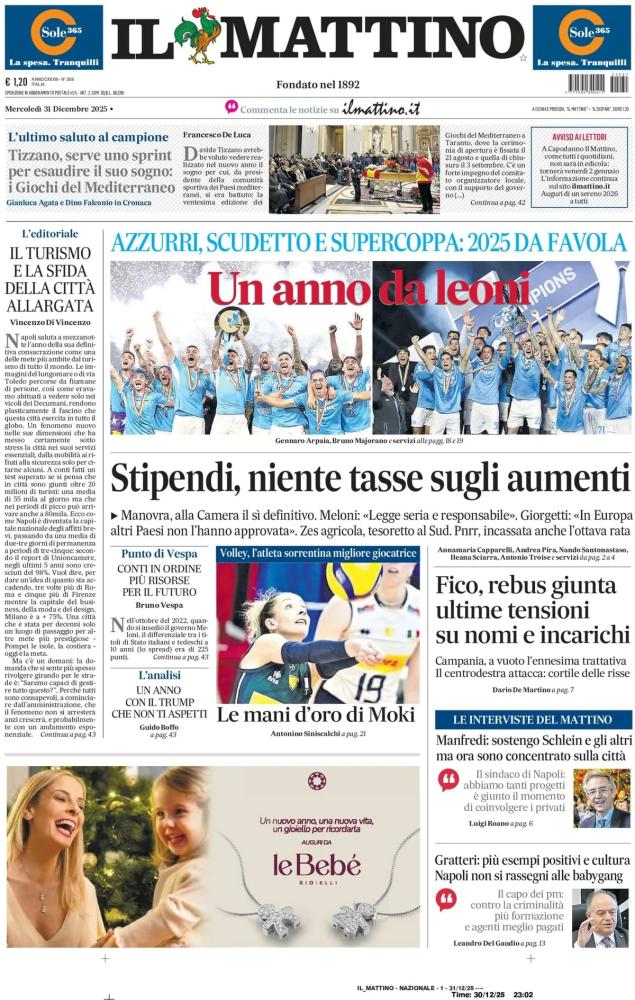 Le prime pagine dei quotidiani italiani e stranieri di oggi, mercoledì 31 dicembre