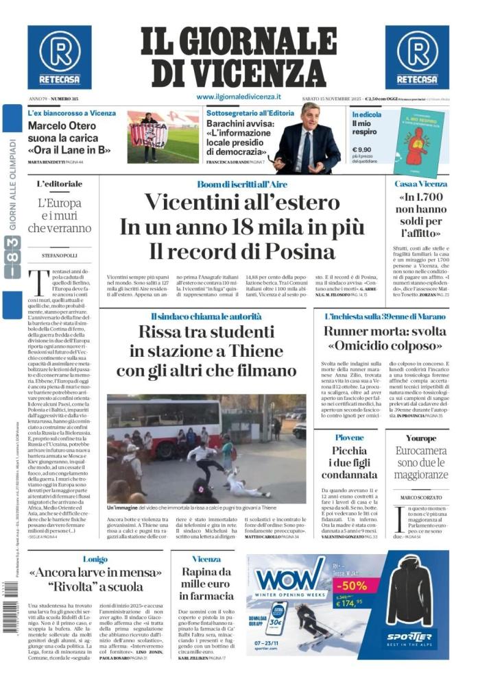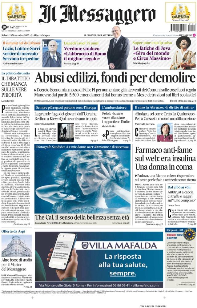 Le prime pagine dei quotidiani italiani e stranieri di oggi, sabato 15 novembre