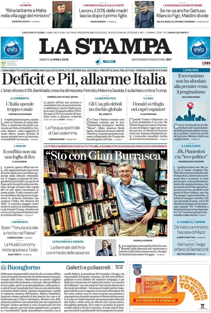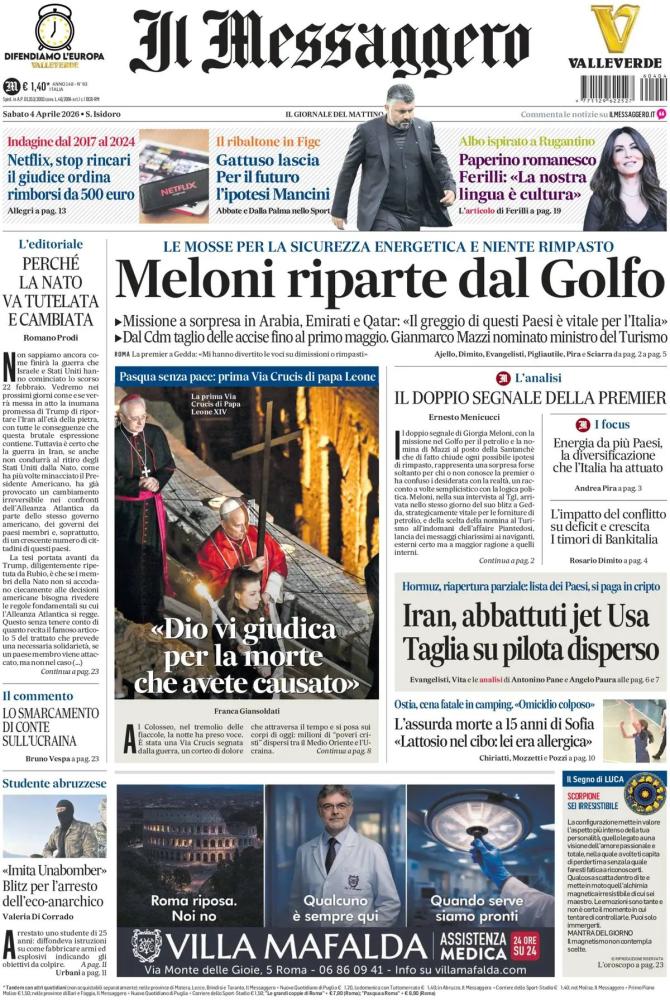 Le prime pagine dei quotidiani italiani e stranieri di oggi, sabato 4 aprile 2026