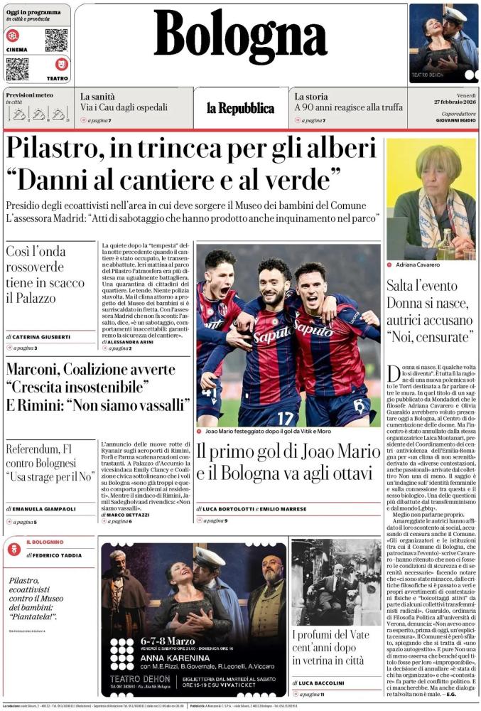 Tanto spazio dedicato al calcio nelle prime pagine dei giornali sportivi italiani oggi in edicola. Tra gli argomenti toccati ci sono ovviamente le coppe europee che ieri sera hanno sorriso al Bologna e alla Fiorentina nei playoff di ritorno di Europa e Conference League: i rossoblu battono 1-0 il Brann al Dall'Ara e volano agli ottavi di finale, mentre i viola vengono sconfitti 4-2 dallo Jagiellonia nella gara del Franchi che arriva ai tempi supplementari e si sudano la qualificazione al turno successivo. Oggi sono in programma i vari sorteggi degli ottavi che riguarderanno le tre coppe europee, ovvero Champions, Europa e Conference League.