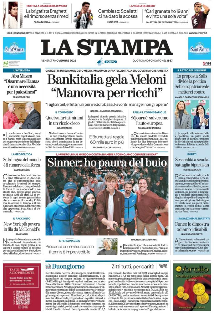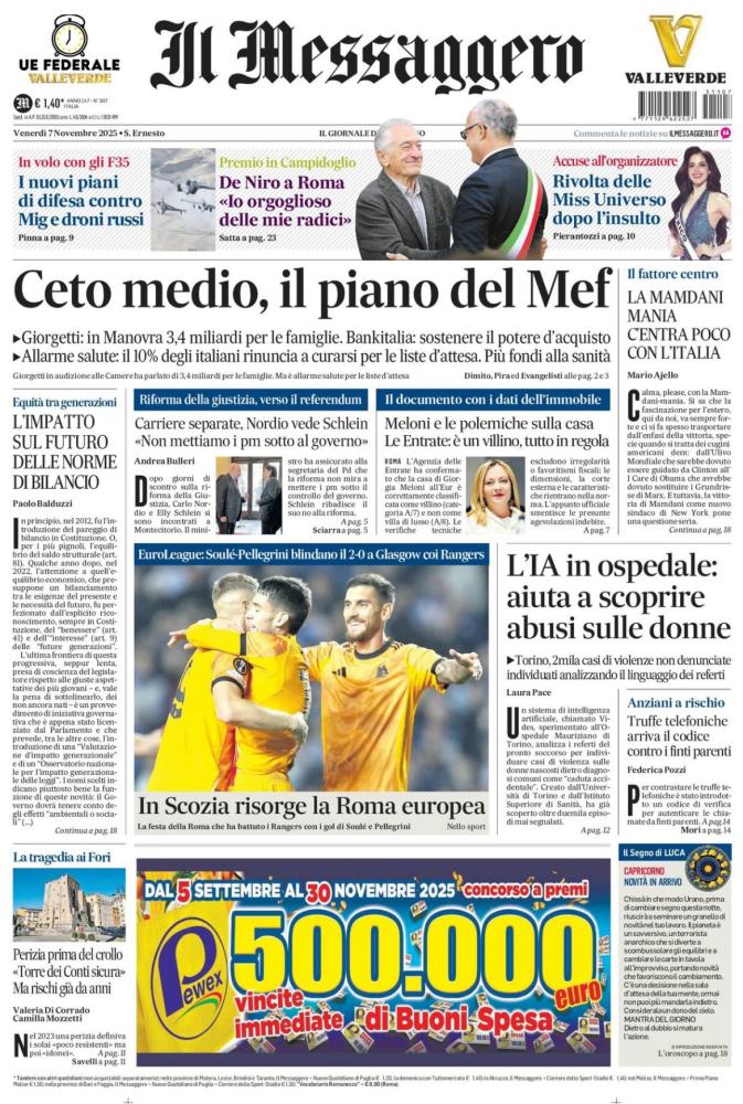 Le prime pagine dei quotidiani italiani e stranieri di oggi, venerdì 7 novembre