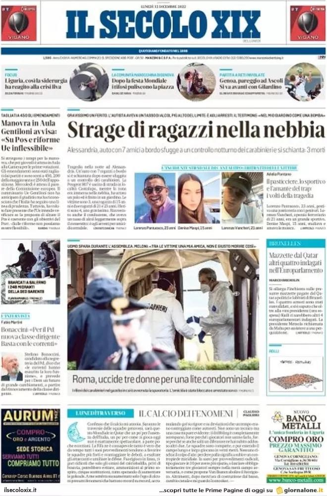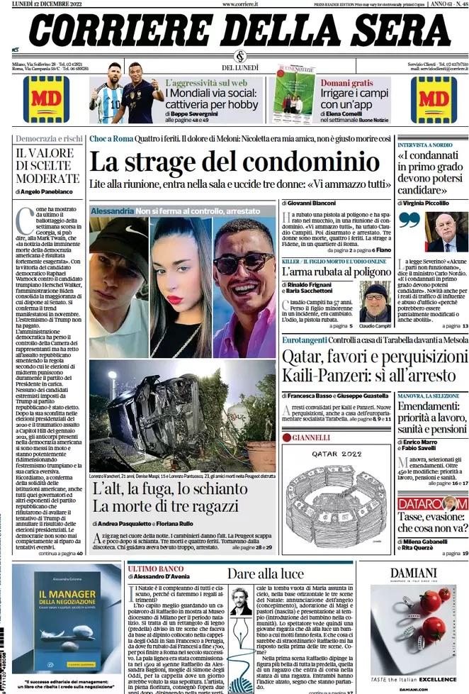 Le principali aperture dei quotidiani italiani e stranieri di lunedì 12 dicembre 2022