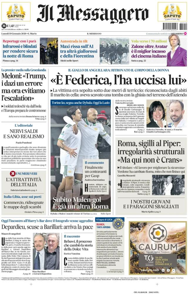 Le principali aperture dei quotidiani italiani e stranieri di lunedì 19 gennaio 2026