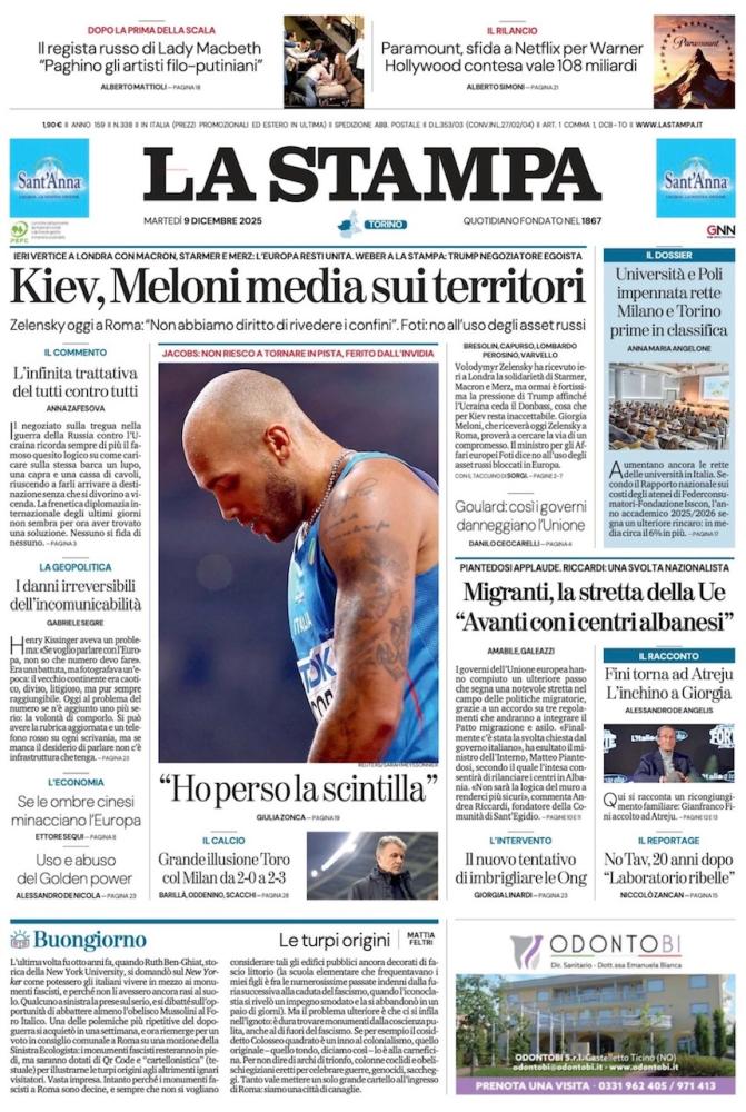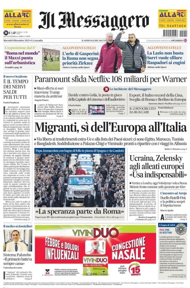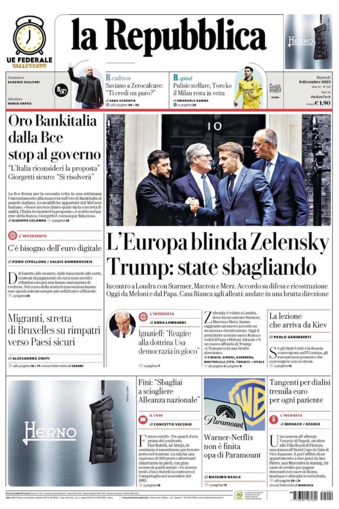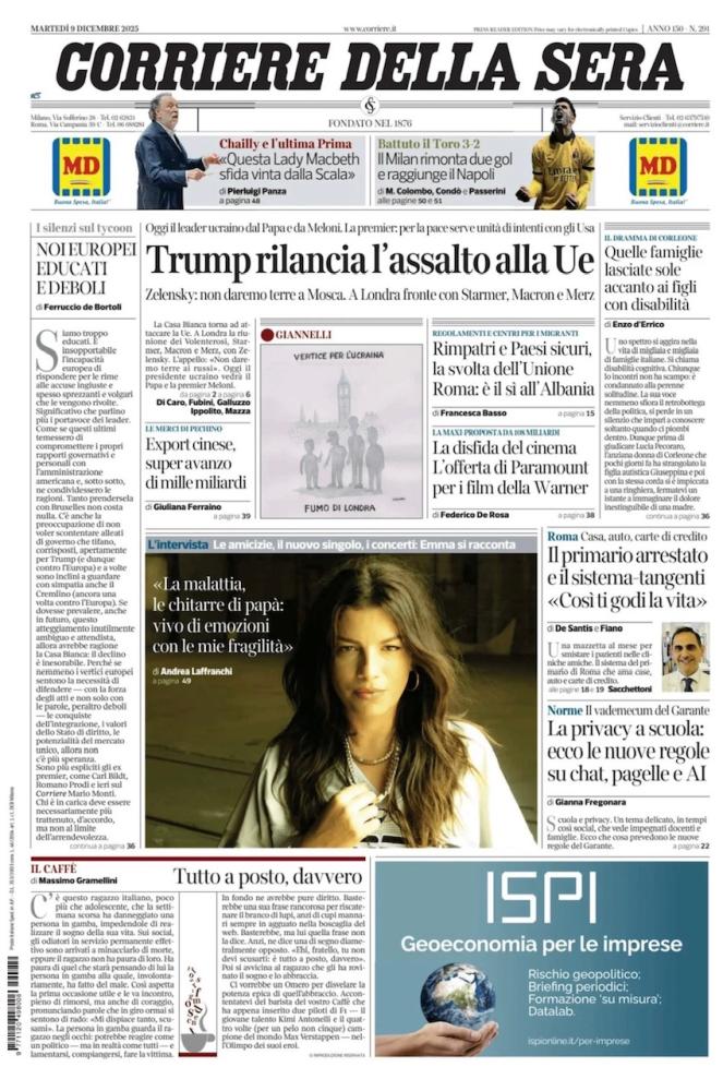 Le principali aperture dei quotidiani italiani e stranieri di martedì 9 dicembre 2025