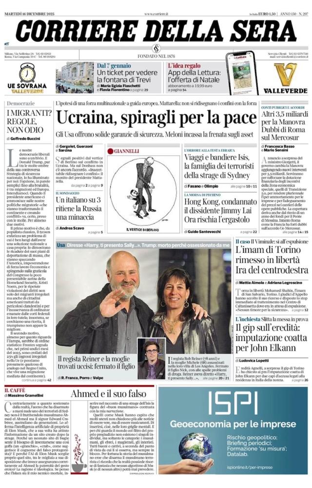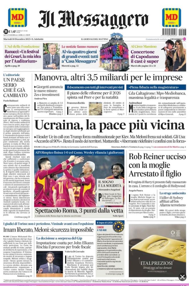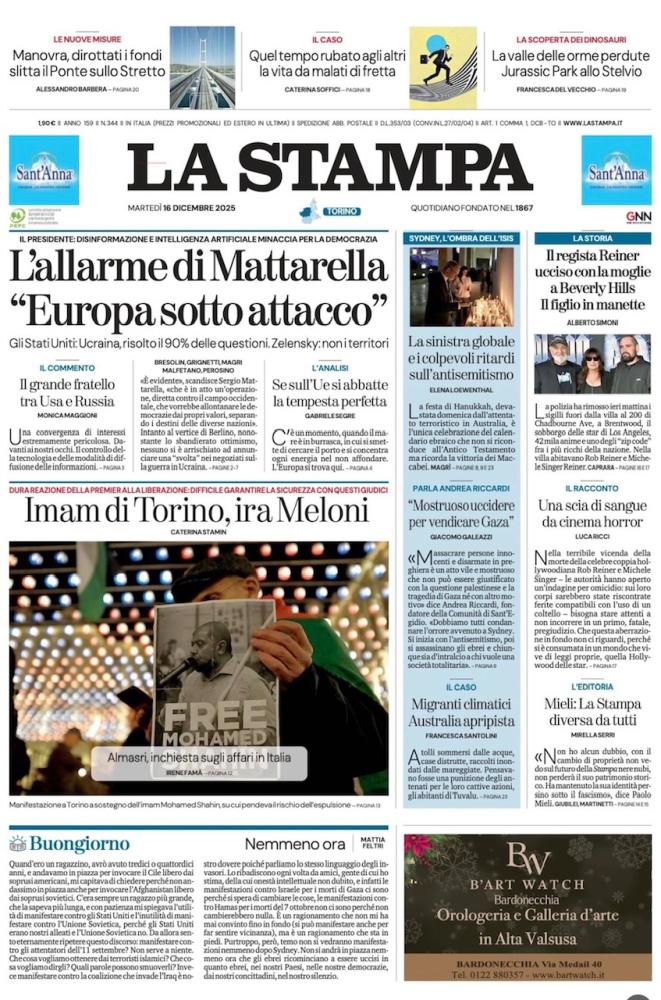 Le principali aperture dei quotidiani italiani e stranieri di oggi 16 dicembre 2025