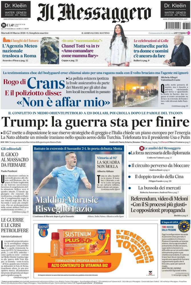 Maldini-Marusic, Sassuolo ko in extremis. Il Messaggero titola: "Risveglio Lazio"
