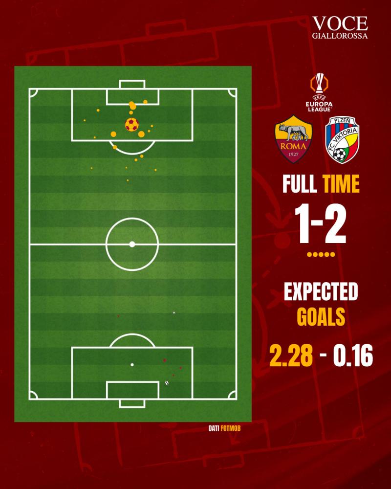 Roma-Viktoria Plzen 1-2 - Cosa dicono gli xG - Ancora fatica "dal campo". GRAFICA!