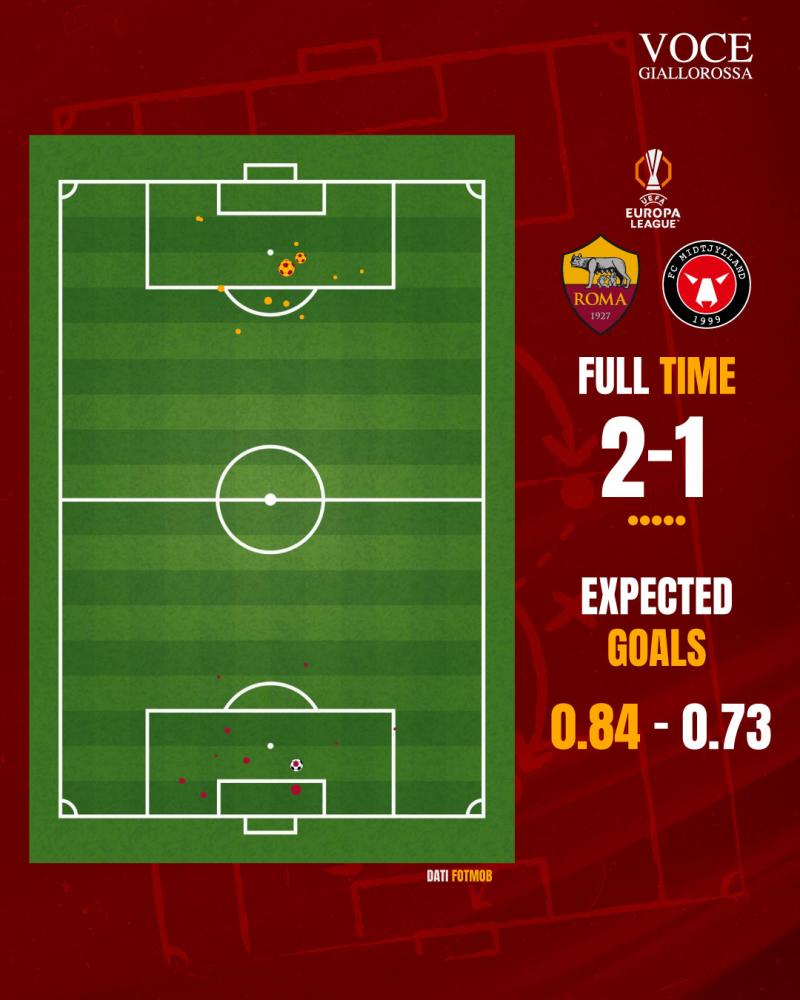 Roma-Midtjylland 2-1 - Cosa dicono gli xG - Un altro successo in overperformance. GRAFICA!