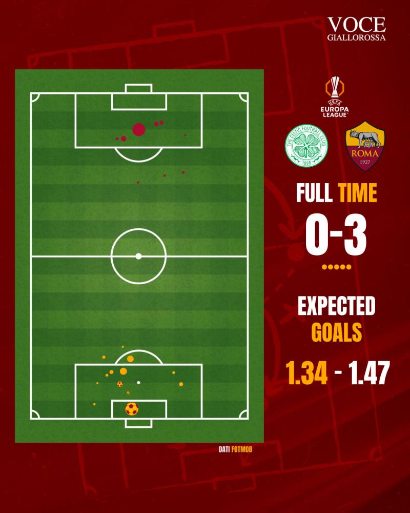 Celtic-Roma 0-3 - Cosa dicono gli xG - I numeri raccontano un falso equilibrio. GRAFICA!