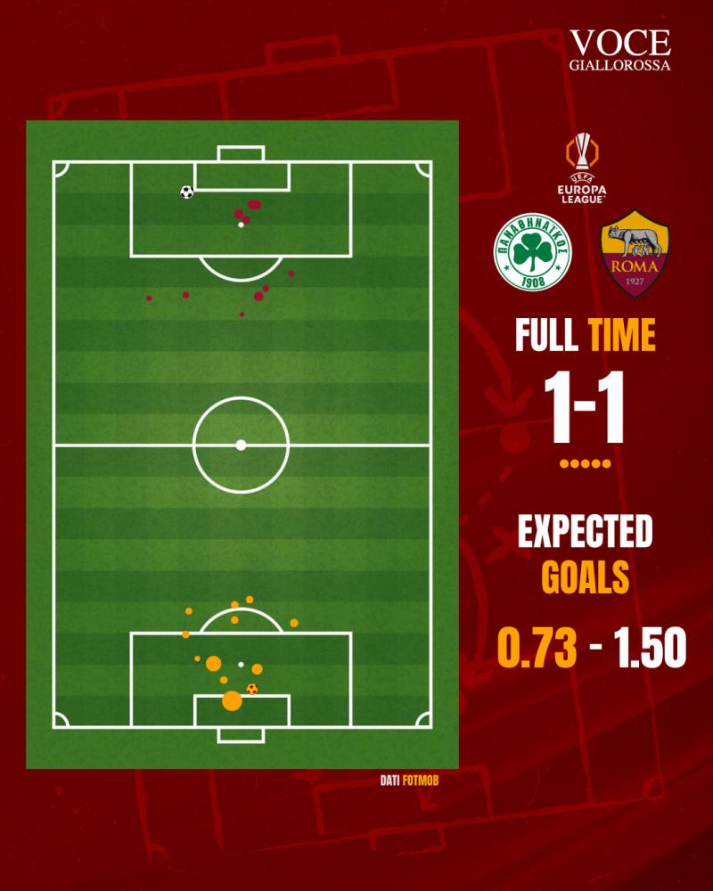 Panathinaikos-Roma 1-1 - Cosa dicono gli xG - La difesa tiene nonostante l'inferiorità numerica. GRAFICA!