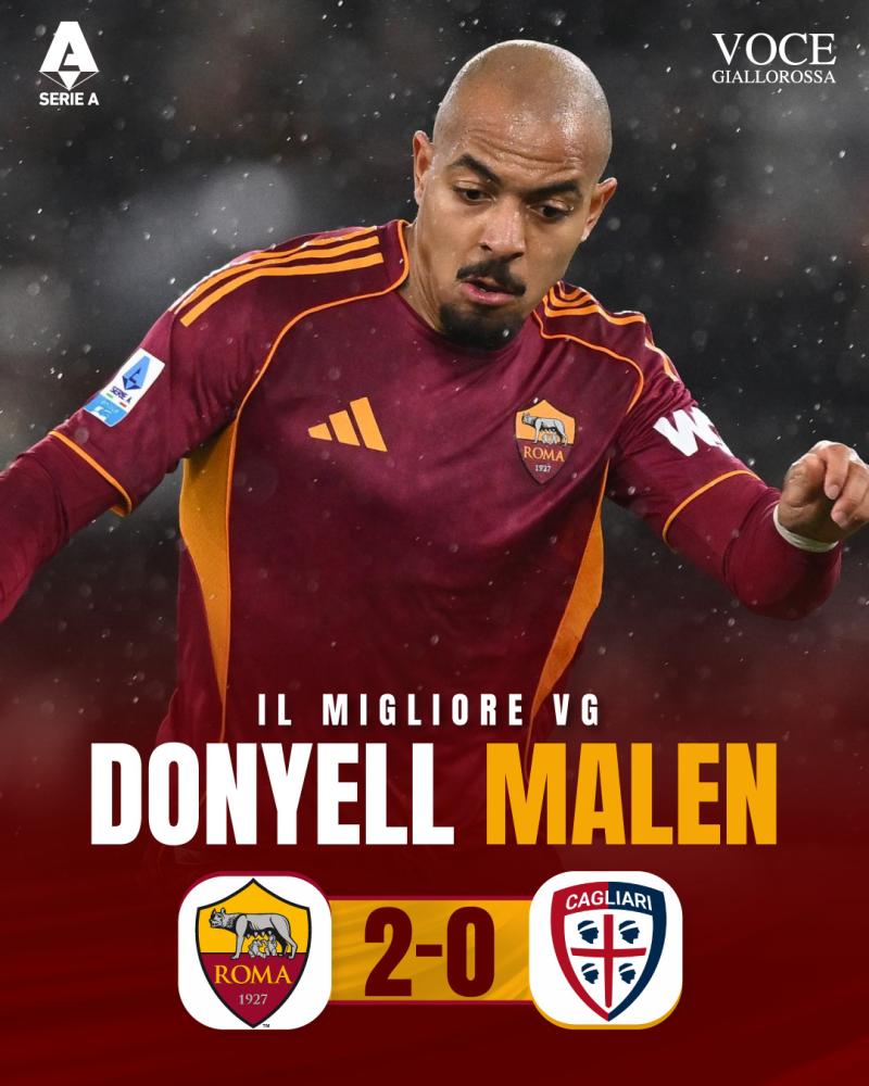 La Roma vince contro il Cagliari allo Stadio Olimpico grazie a una splendida doppietta di Doneyll Malen. Proprio per questo motivo, l'olandese è stato quindi stato nominato #IlMiglioreVG dai nostri lettori attraverso le votazioni avvenute sui canali social di Vocegiallorossa.it. Per Malen si tratta del secondo riconoscimento stagionale.