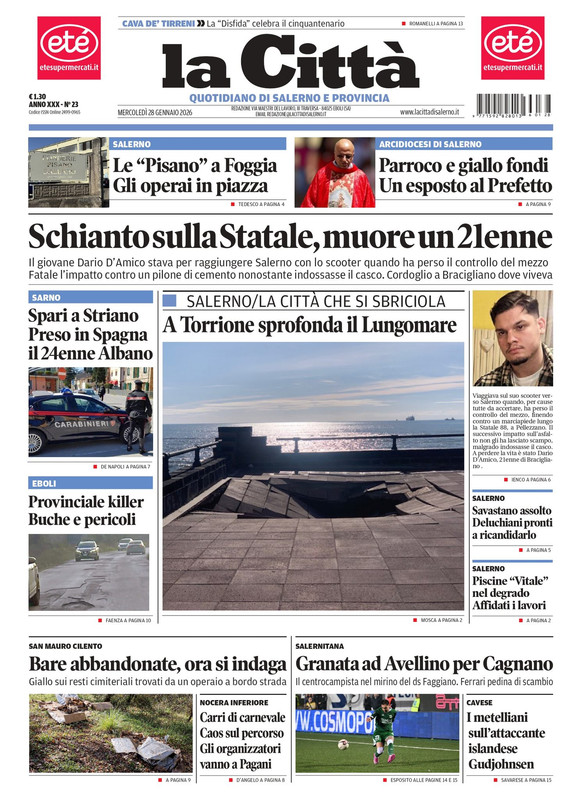 "Granata ad Avellino per Cagnano" titola il quotidiano La Città in edicola oggi sulla Salernitana. L'esterno nel mirino del ds Faggiano. Ferrari possibile pedina di scambio.