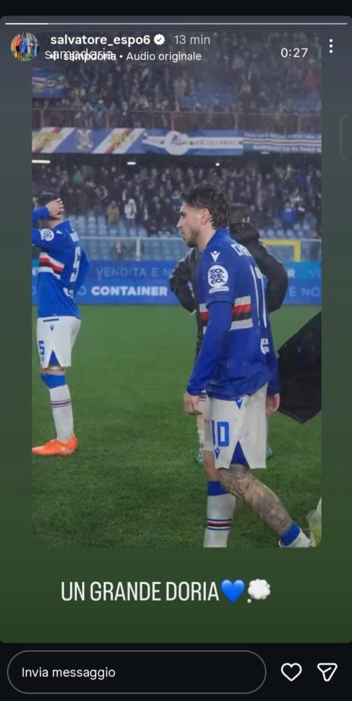 Social Sampdoria, Esposito si complimenta con i compagni: "Un grande Doria"