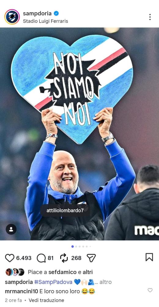Social Sampdoria, Roberto Mancini completa il messaggio di Lombardo "Noi siamo noi..."