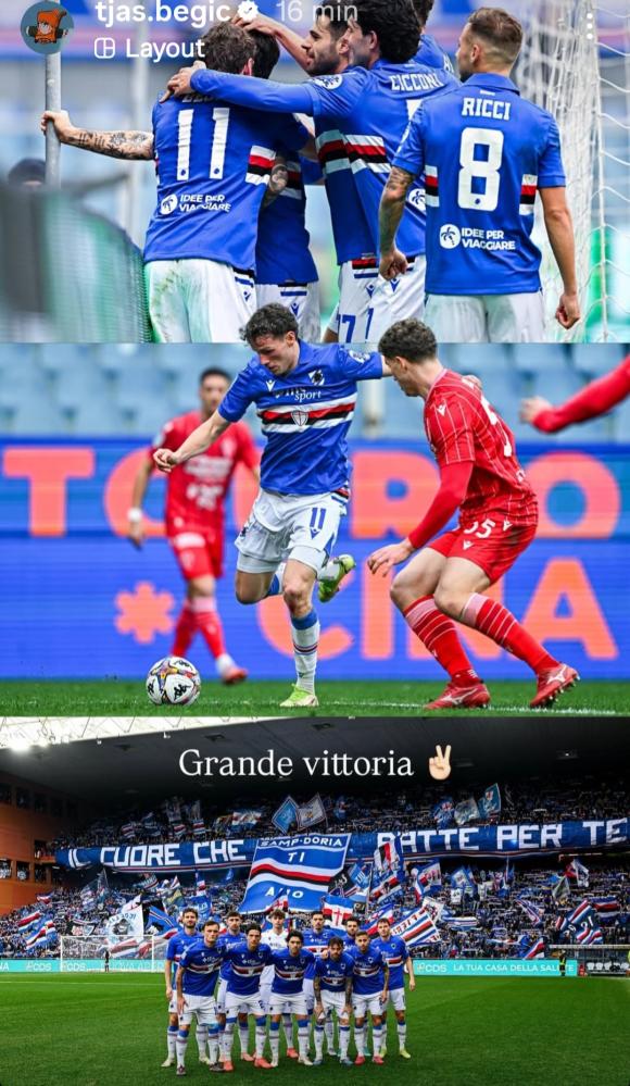 Tjas Begic ha inciso anche nella partita col Padova, guadagnandosi il rigore. Il calciatore sloveno della Sampdoria ha celebrato i tre punti scrivendo sui social: "Grande vittoria".