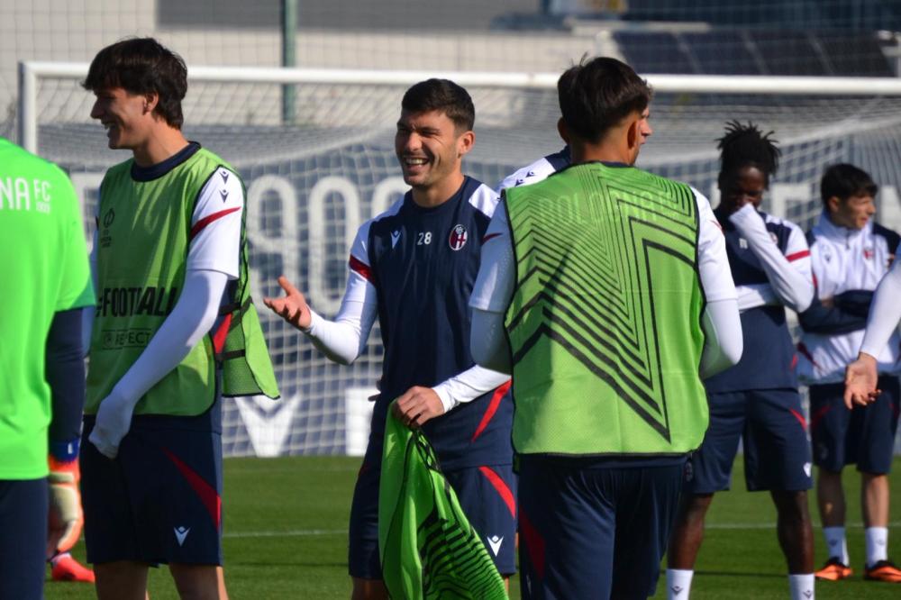 Al centro tecnico Nicolò Galli di Casteldebole si è svolto poco fa l’allenamento di rifinitura del Bologna alla vigilia della partita del quarto turno della Fase Campionato di Europa League in cui i rossoblù sfideranno i norvegesi del Brann.
