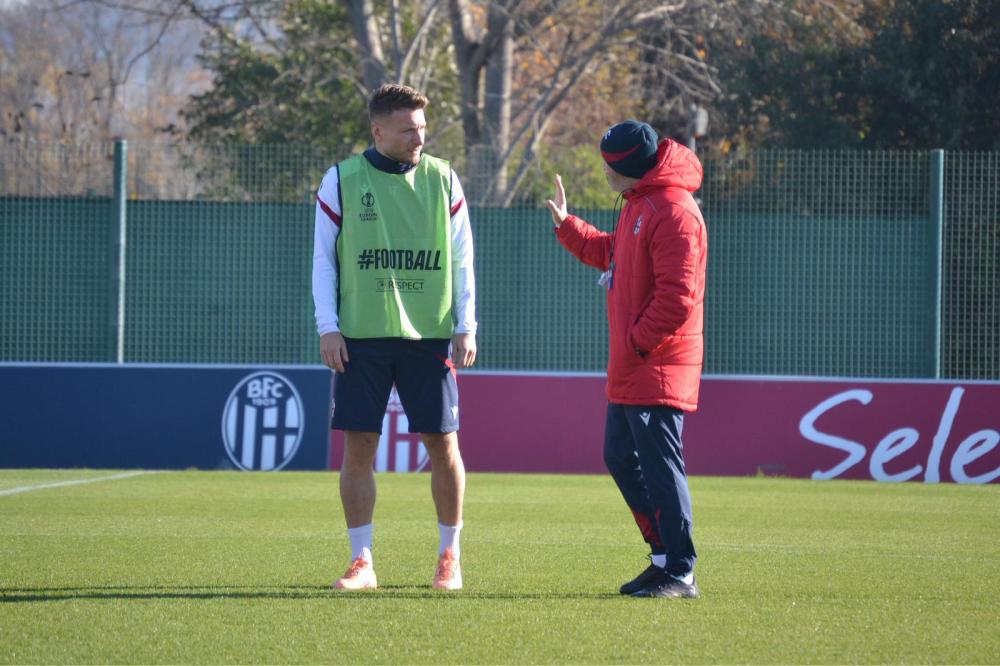 Bologna, rifinitura in vista del Celta Vigo: lungo colloquio tra Italiano e Immobile