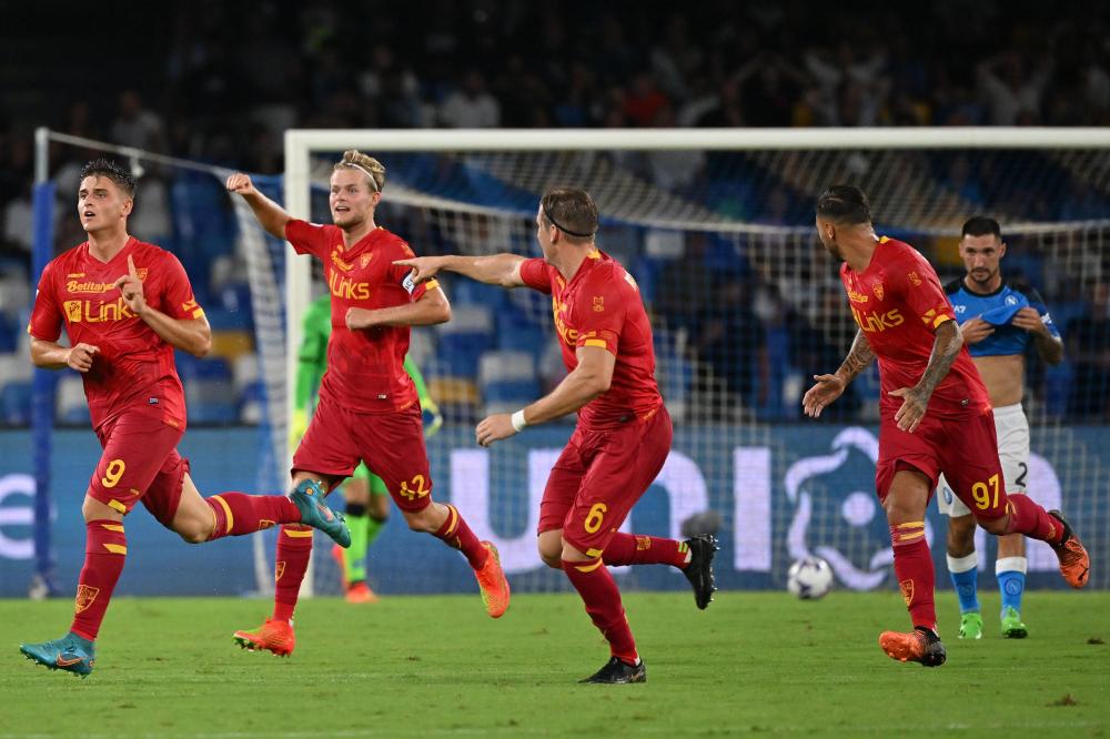 Il Lecce costringe il Napoli al secondo pareggio consecutivo. Non basta alla squadra di Spalletti la rete di Elmas, arrivata dopo il rigore parato da Meret. Colombo, che aveva sbagliato dagli 11 metri, trova il gol dell'1-1 definitivo, inutile l'assalto nella ripresa dei padroni di casa. Ecco le immagini più belle della sfida, raccolte da Tuttomercatoweb.com.