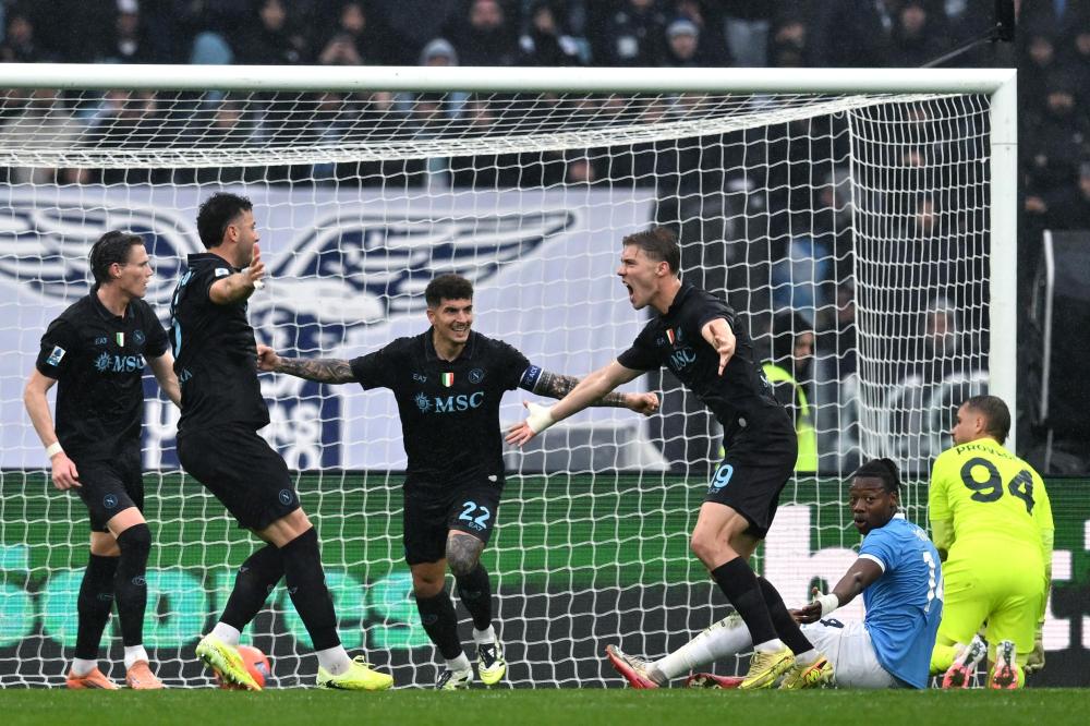 Nella ripresa la squadra di Maurizio Sarri ha provato ad uscire dal proprio guscio ma non è riuscita a creare pericoli alla porta di Milinkovic-Savic salvo per una traversa colpita nel finale di Guendouzi. Da segnalare un finale rovente con un rosso sventolato prima a Noslin per doppia ammonizione e successivamente a Mazzocchi e Marusic che sono venuti alle mani dopo uno scontro di gioco. Tre punti che servono ai partenopei per rimanere in scia del Milan capolista, in attesa della gara fra Inter e Bologna, in campo stasera alle 20.45 a San Siro.
