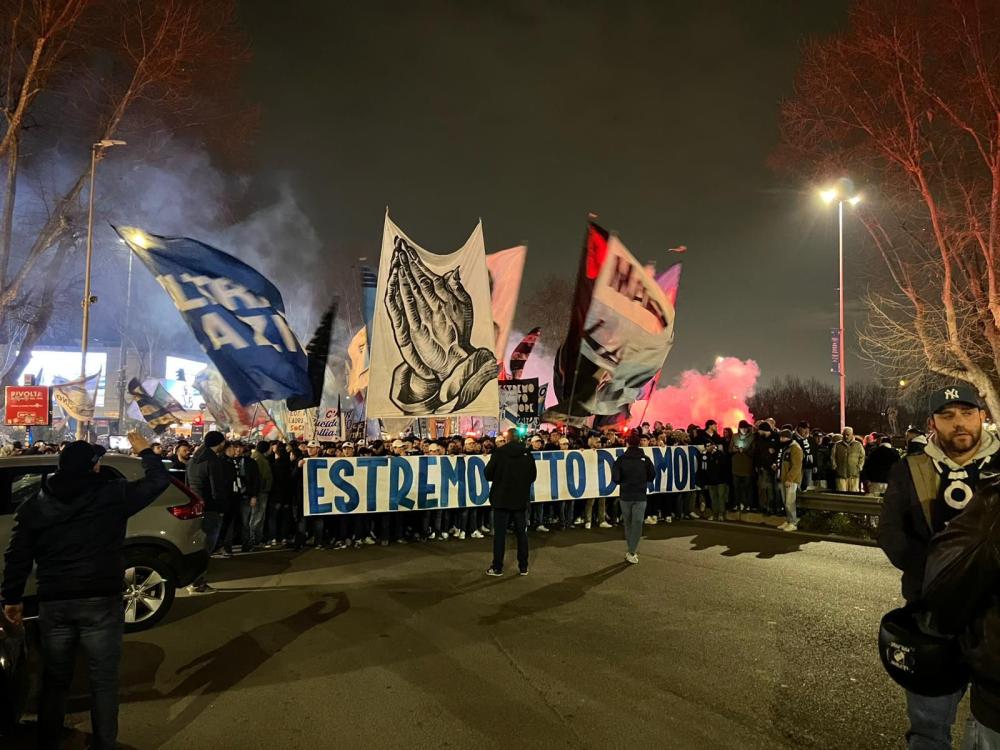 I tifosi, però, sono comunque arrivati all’Olimpico. Come mostrano le immagini e i video raccolti dalla redazione di TMW in calce all'articolo, dopo essersi radunati a Ponte Milvio, luogo simbolo del tifo laziale, hanno dato vita a un corteo diretto proprio verso lo stadio, pur senza varcarne i cancelli. In tanti si sono ritrovati nel punto di ritrovo scelto per dare il via alla manifestazione, aperta da uno striscione eloquente: “Estremo atto di amore”. Tra i tifosi presente anche il noto presentatore Pino Insegno.