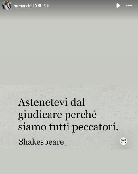 Mancini criptico sui social: "Astenetevi dal giudicare perché siamo tutti peccatori"