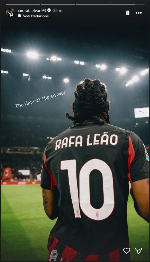 Oggi è arrivata la conferma della non convocazione in Nazionale: ovviamente Rafa era stato selezionato dal CT Martinez ma viste le condizioni fisiche il giocatore e lo staff di Allegri hanno preferito chiedere che il numero 10 rimanesse a Milanello. Della giornata di oggi, lunedì, le critiche pesanti di Paolo Di Canio: l'opinionista è stato intervistato a un evento milanese di padel per ex calciatori (LEGGI QUI). La risposta di Rafa è arrivata, come spesso è capitato, tramite le storie di Instagram. Leao ha pubblicato una foto in maglia Milan, accompagnata da un semplice messaggio: "Il tempo è la risposta".