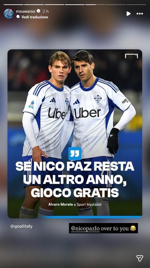 Morata giocherebbe gratis per Nico Paz. Suwarso si accoda: "Ora tocca a te..."